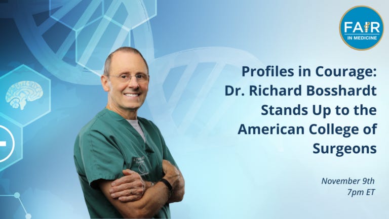 I will discuss my lifetime ban by the American College of Surgeons for speaking out against the claim that I and my fellow surgeons are racists.